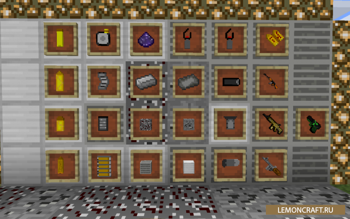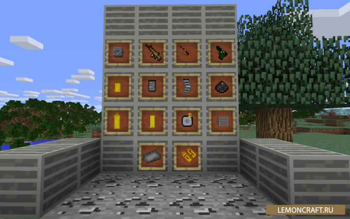 Мод на оружие, боеприпасы и еду Military Workspace довольно простой мод созданный в mcreator, который можно отнести к военной тематике. Данный мод добавит в игру новое огнестрельное оружие, боеприпасы к нему, броню и нового моде - спецназовца. Для создания нового оружия в игру добавлены новые руды, используя которые вы сможете создать пистолеты, револьверы, автомат, ножи, винтовки и другие виды оружия. Биом разработан специально для проведения военных действий. В нем отсутствует трава, большое количество деревьев и сложный рельеф. С этим модом вы сможете организовать настоящие сражения победив в которых вы получите ценные призы.